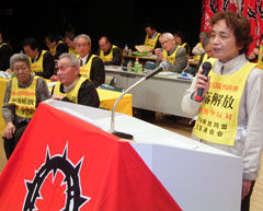 全国の清掃の労働組合でたたかう同盟員が登壇。清掃職場の民営化に反対し、部落差別とたたかい人員補充や一般職との賃金格差の解消など、部落民労働者の要求実現の取り組みを報告しました。また、11月労働者集会に参加する決意をあきらかにしました。
