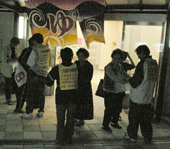 10月24日に村内の銭湯前で事実調べを求める署名をよびかけました。風呂に行く人、あがってきた人が次々に足を止めました。「石川さんのことやったらがんばらなあかん」と、支部員いがいの住民からも多くの署名がよせられました。