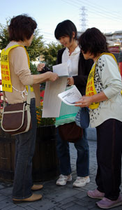 9月末の住道駅での改憲反対署名につづき、10月31日の野崎駅頭での狭山署名活動に婦人、青年、共闘が一丸となって取り組みました。