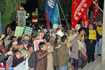 | 国会(議面前)に押し寄せ委員会採決を弾劾! (11月16日 夕方) |