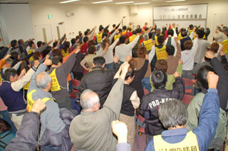 今回の問題で、現業の民営化、合理化を進めることは絶対に許さない。現業労働者は低賃金で労働条件も悪いなか必死で行政とたたかい、やっと生活できるようになった。今さら、「優先雇用」や「手当が高い」といわれる筋合いはない! 今の攻撃は、解放運動も労働運動も国の意志でたたきつぶす攻撃です。一致団結してたたかっていきたい。