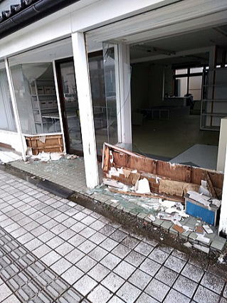 2月8~9日七尾市を訪問。駅に近接する7戸の地区。段差、ガラスは割れ、家具はグチャグチャ。住民は皆無。