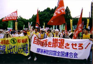 有事関連10法案を強行成立させた小泉は、自衛隊を多国籍軍に加え、イラク人民を虐殺する道を選択したのです。同時に、北朝鮮侵略戦争に突っ走ろうとしています。私たちは、侵略戦争への道を粉砕すべく、この夏、総決起します。憲法改悪ー教育基本法改悪も許してはなりません。