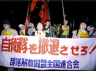 全国連は「帝国主義はイラクから撤兵せよ!」「有事法案反対」「侵略戦争のために部落差別をつよめる小泉政権打倒」を掲げて総決起しました。