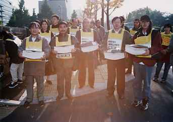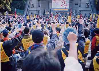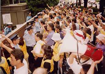 | 高木裁判長による狭山第二次再審棄却決定を糾弾する(99年7月、東京高裁正門前で) |