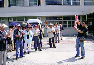 集会後には、村内の5カ所で横断幕をかかげた大宣伝をおこなって、番町住民の決起を訴えました。声をかけてくる人や署名をする人が多く出ました。